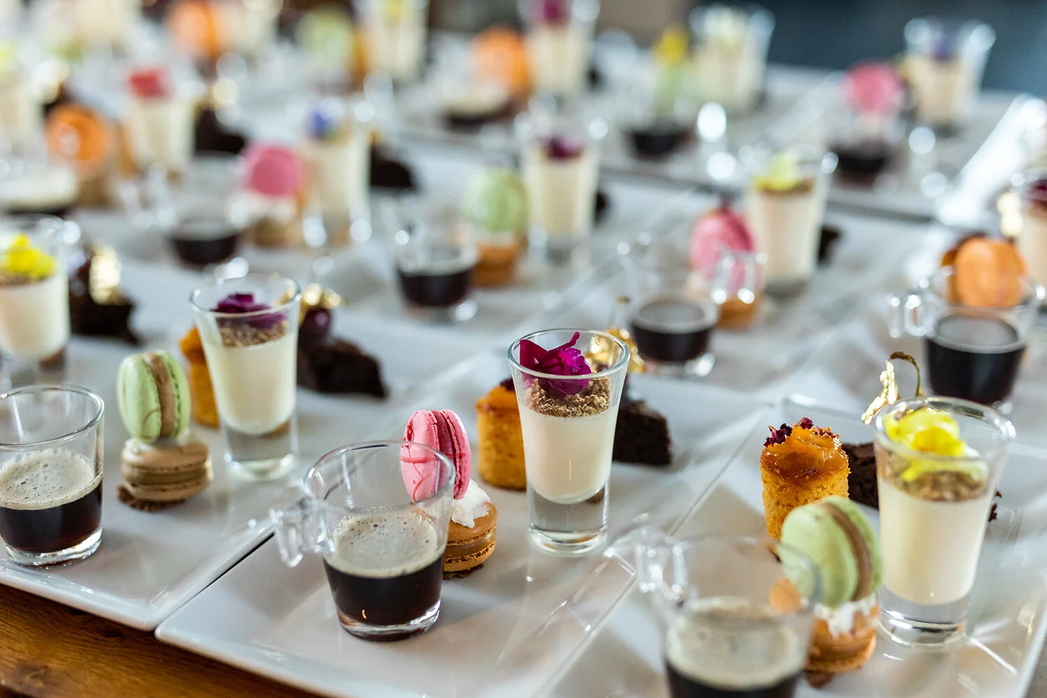 After more group photos and some lovely newlywed portraits of the two of them, we were back at Grove Farm, Claire and Tom making their entrance in an amazing (and loud) Jaguar. Their guests mingled and enjoyed canapés, and then took their seats in the stunningly-decorated indoor-outdoor side room for the incredible food that Ministry of Food Hampshire had concocted. Speeches soon followed, and, as the sun began to set, Claire and Tom made their way outside for the first dance amidst the gorgeous golden light – a truly magical, romantic moment.