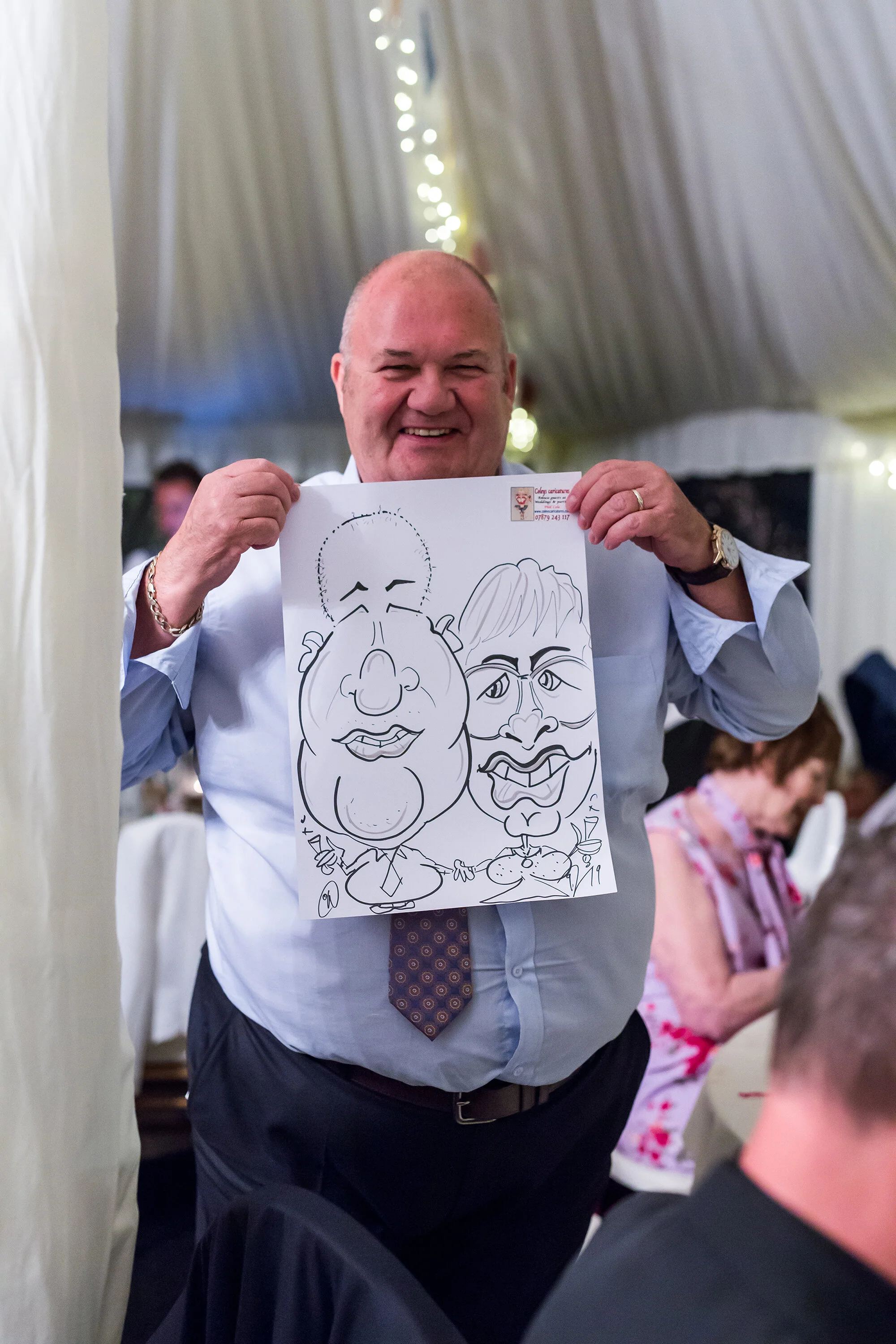 After a confetti throw and some couple portraits around the churchyard, Jess and Rob made their way to Blackberry Cottage in a vintage Morris Minor car with glasses of bubbly. The house itself was stunning, and a large marquee had been set up in the grounds. From the old photographs of the couple to the stationery, which had been handmade by Rob, there were personal touches throughout. Family portraits and some more couple shots in the rolling fields next to the venue led to the speeches and a delicious meal.